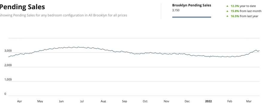Brooklyn Pending Sales remained flat compared to last week, at 3,150.