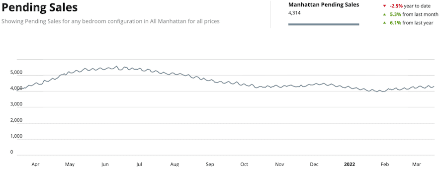 Manhattan Pending Sales remained virtually unchanged for the second week in a row, at 4,314.